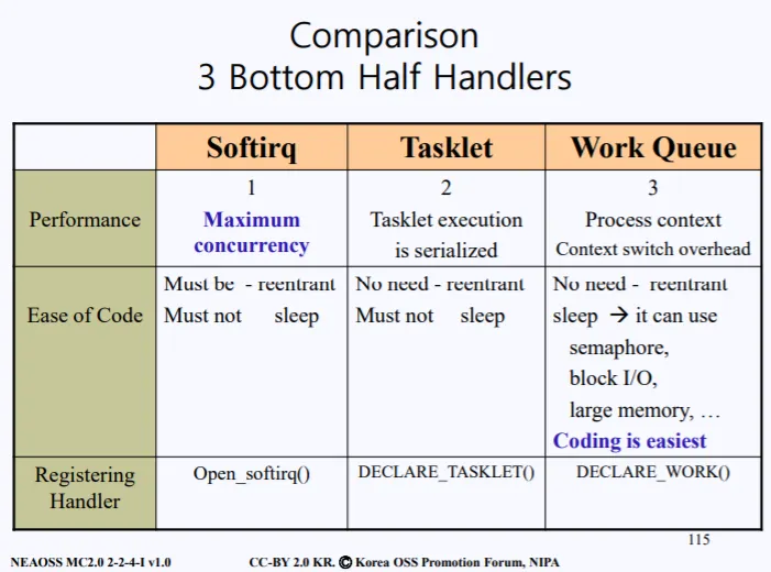 3가지 Bottom-half 핸들러의 특징은 아래의 그림으로 정리가 된다