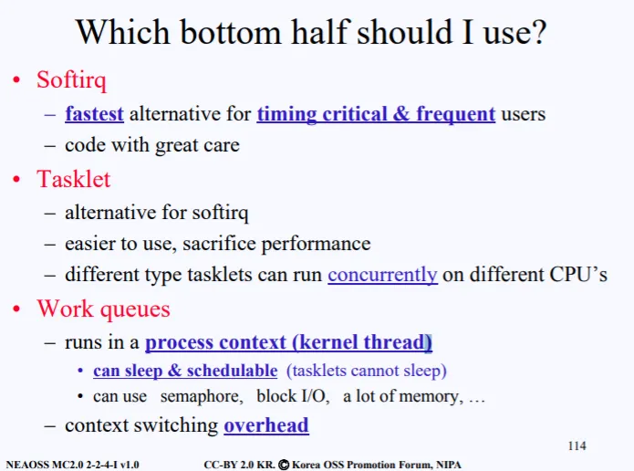 저번시간에 Top-half와 Bottom-half에 대해서 설명을 했다. 이번 강의는 Bottom-half에 대해서 좀더 자세히 알아보는시간을 가져보자.