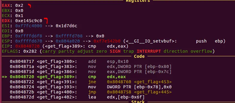 v2와 buf의 값을 일치시키는게 이 문제의 포인트다. 근데 어케하지..? 그냥 set 으로 레지스터 값을 강제로 변경시키면 되긴 하는데 그렇게 푸는게 맞나..?
