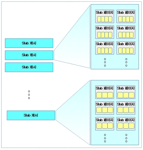 슬랩 캐시는 바로 이러한 1개 이상의 슬랩 페이지가 모여서 구성된다.
