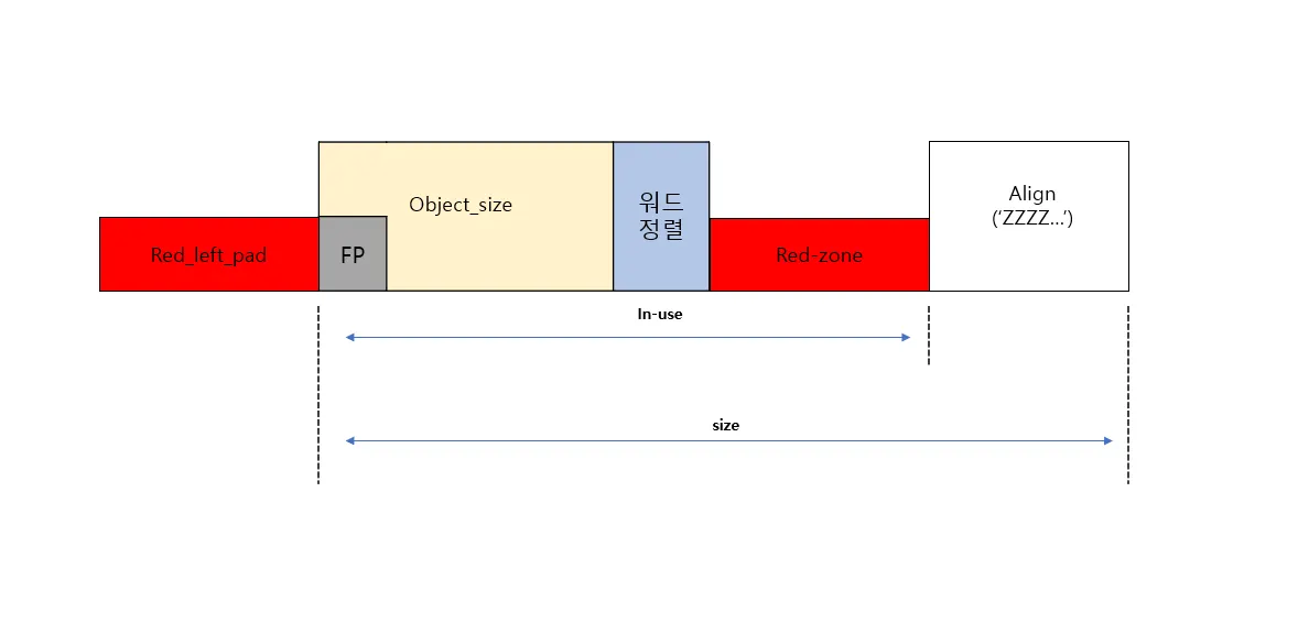 object-size 좌우에 red-zone 값을 기록한 후 object의 생성과 소멸 시에 이 값이 변경되는 것으로 에러 검출을 한다