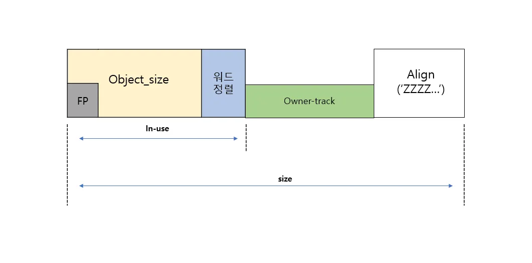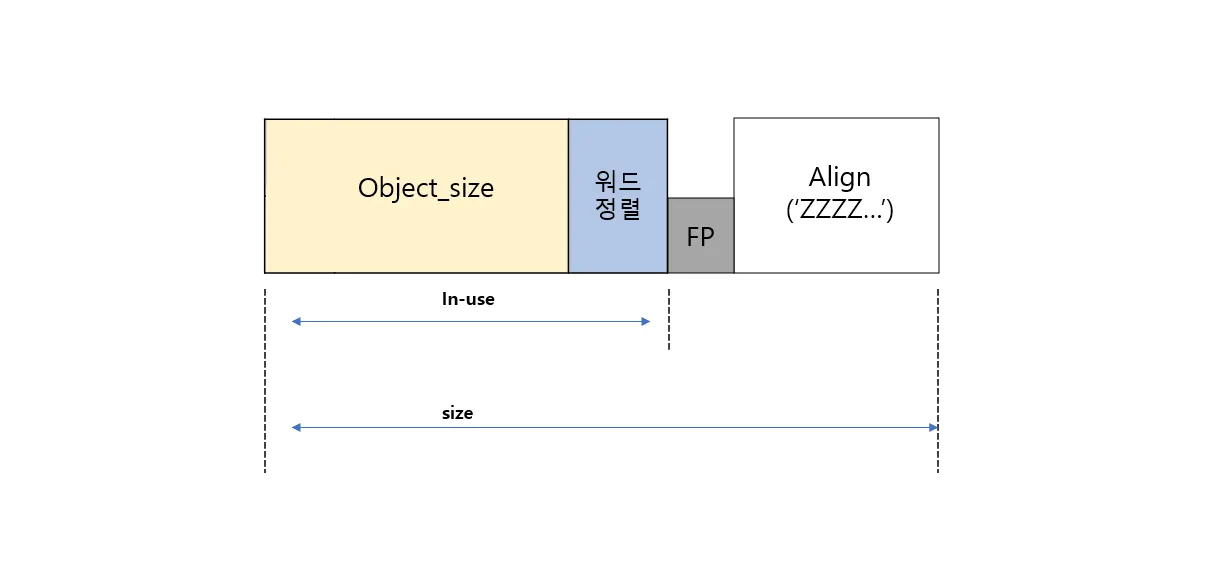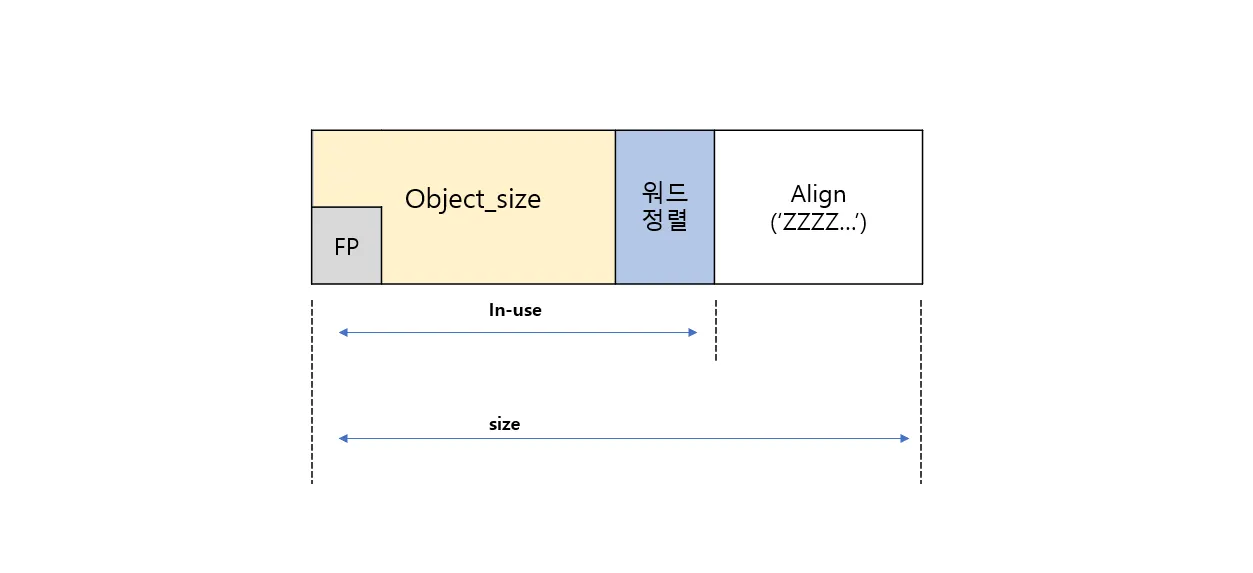 전체 오브젝트 사이즈는 실제 object 사이즈 (in-use) + align 단위이다