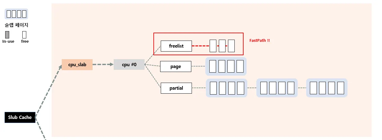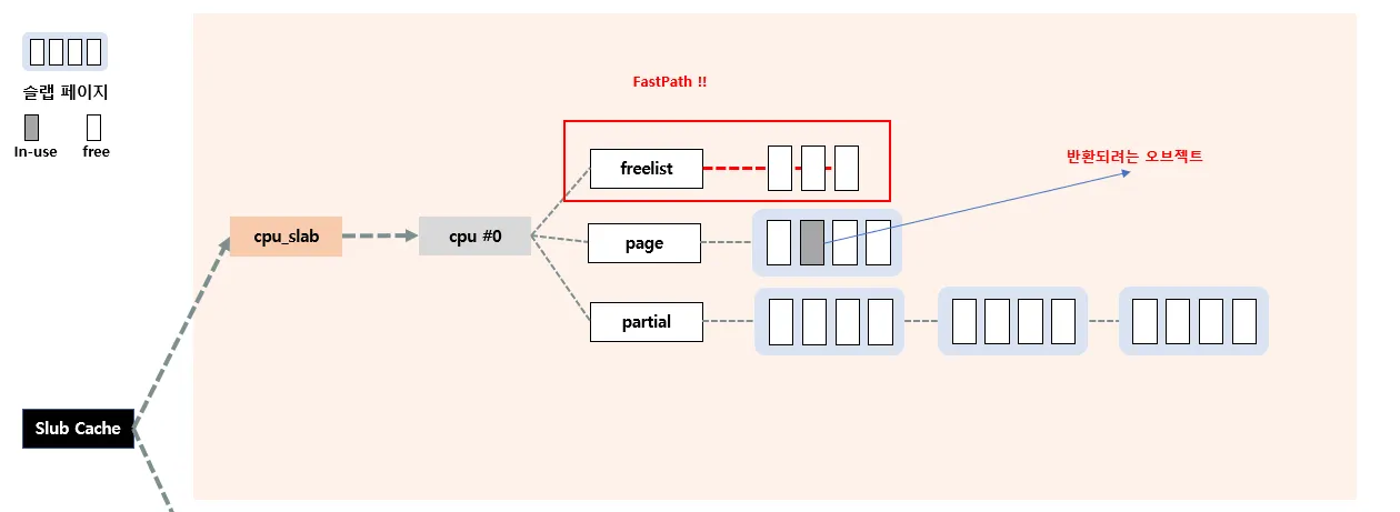 Fastpath는 가장 빠른 할당방식으로, 현재 c→freelist에 할당 가능한 object가 있으면 바로 할당해주는 방식을 뜻한다.