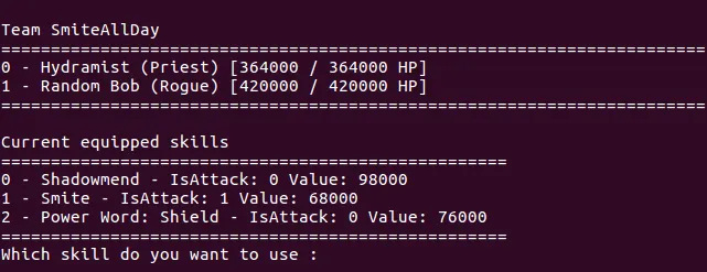 printf("What type of skill is this (0: Heal, 1: Attack): ");
