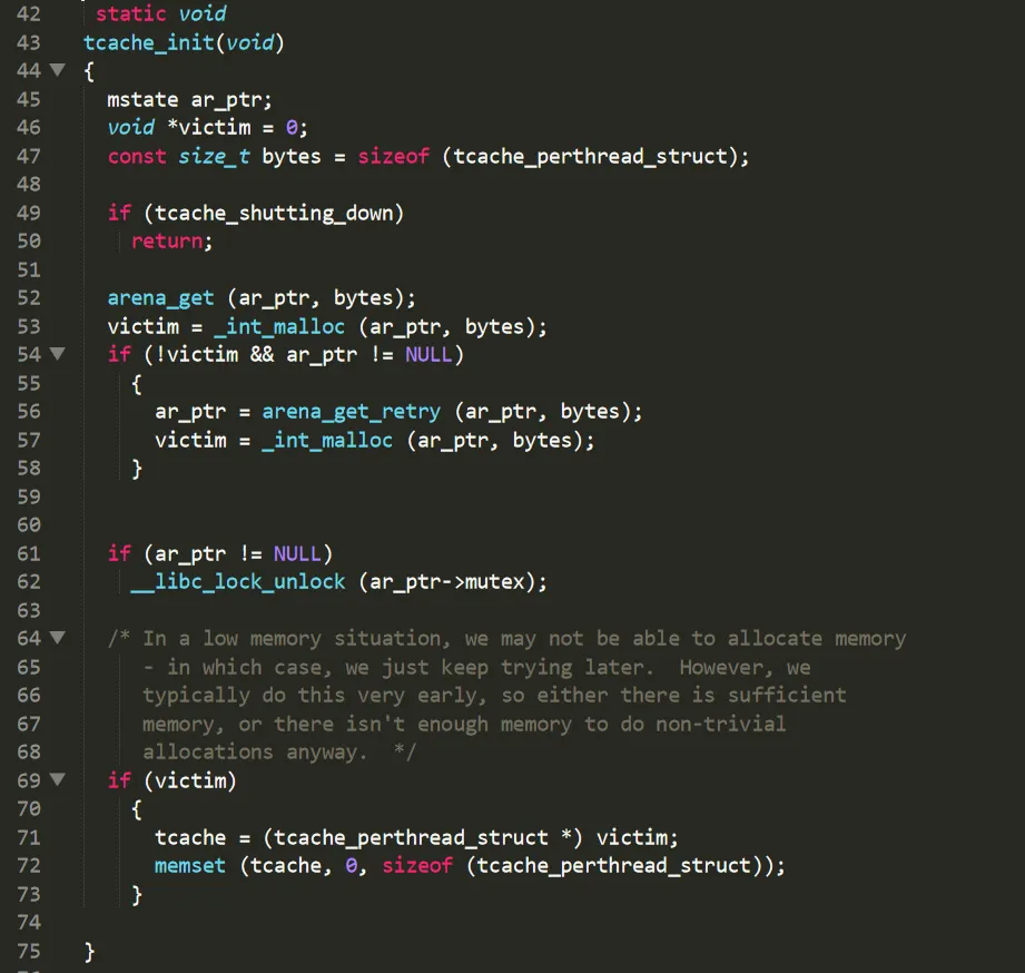 MAYBE_INIT_TCACHE가 호출되면, tcache가 NULL일시 tcache_init을 다시 호출함