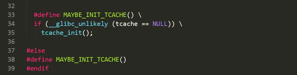 MAYBE_INIT_TCACHE() 함수가 추가된 것을 볼 수 있음.