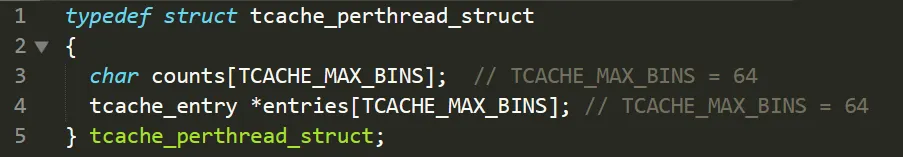 구조체의 멤버변수는 포인터변수 next밖에 없다. 해당 포인터는 tcache list를 관리한다고 보면 된다.