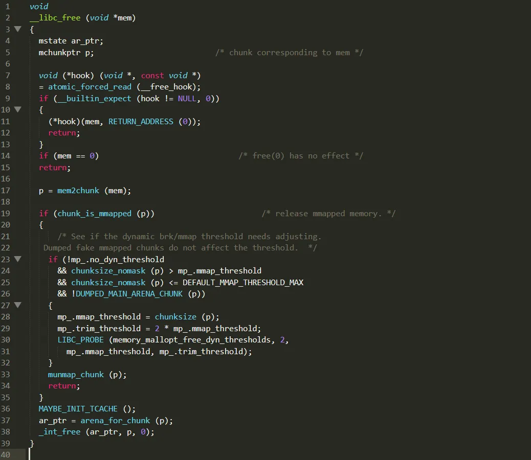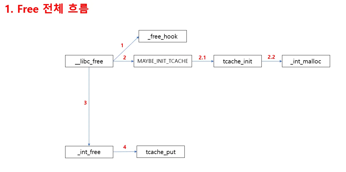 처음에 _libc_free 함수가 호출되면서 free_hook을 검사한다. 있으면 호출되고 없으면 넘어간다