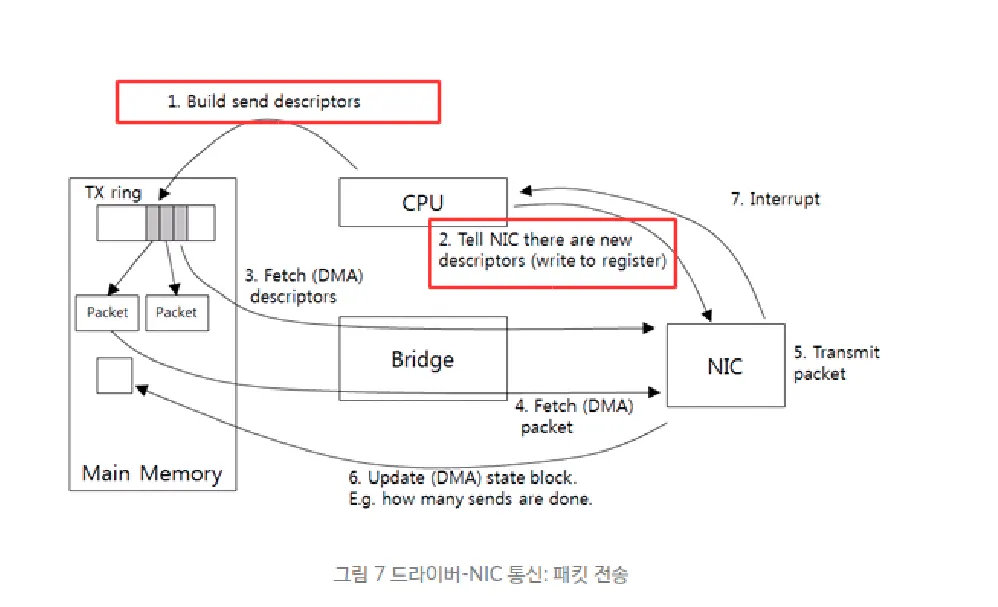 Tx-descriptor 세팅 → Tx-ring 버퍼에 들어감.