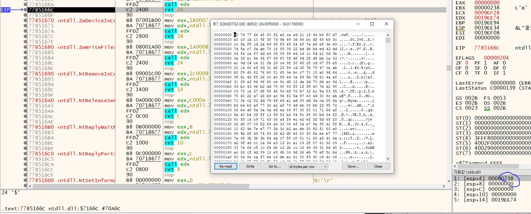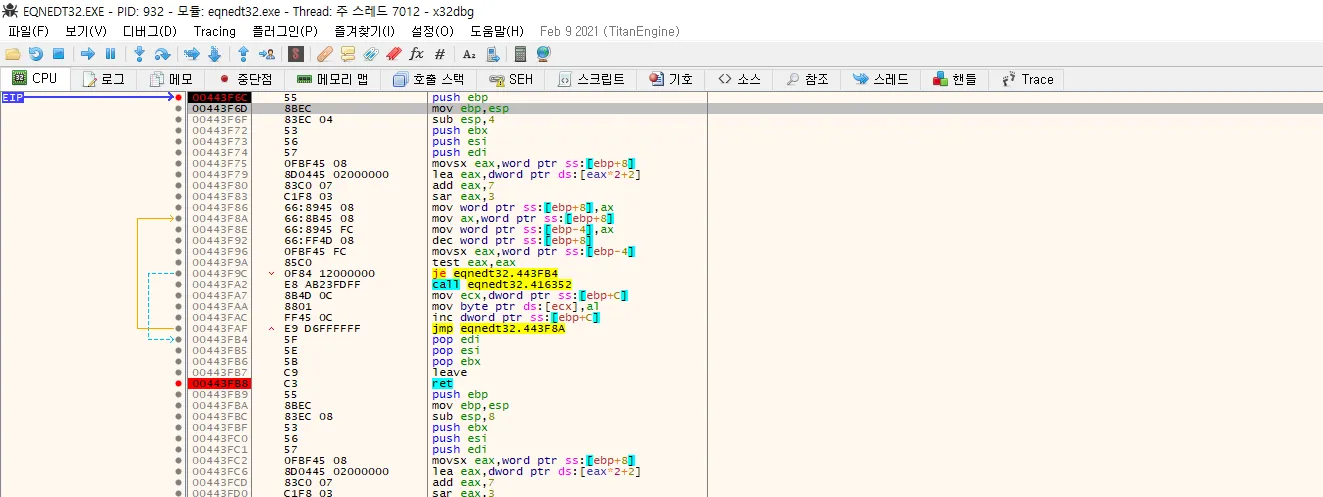 실제 WINWORD.EXE가 실행될 때 수식 편집기의 취약점부터 동적으로 분석해보자.