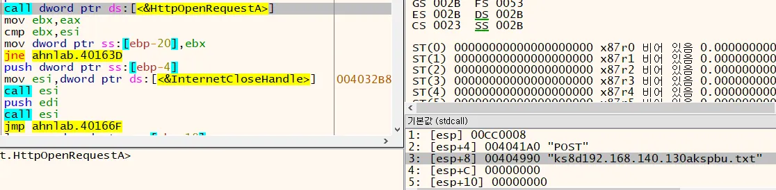 HttpOpenRequestA : C2 서버에 요청할 데이터 생성