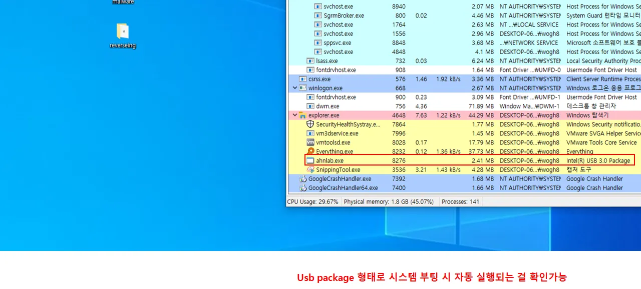 그리고 시스템을 재부팅하면 실제 USB package 형태로 자동 실행된다