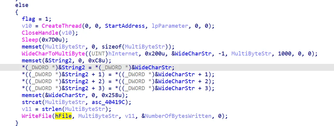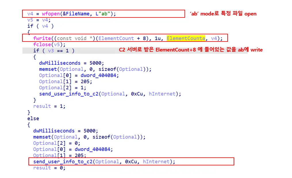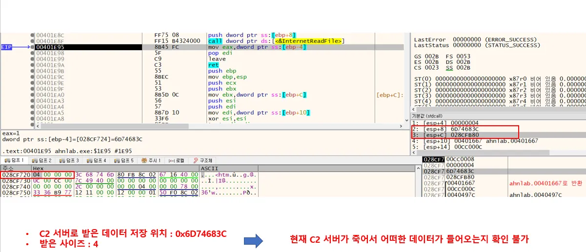 v5 = sub_401E6C(v4); // 실제 C2에서 파일 다운 // InternetReadFile_