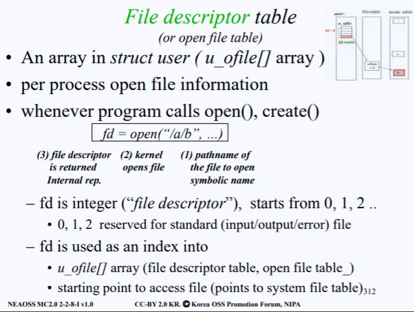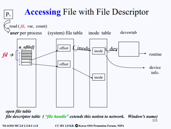 open(path_name) 으로 call하면, 커널이 해당 파일을 open한뒤, fd를 리턴해준다