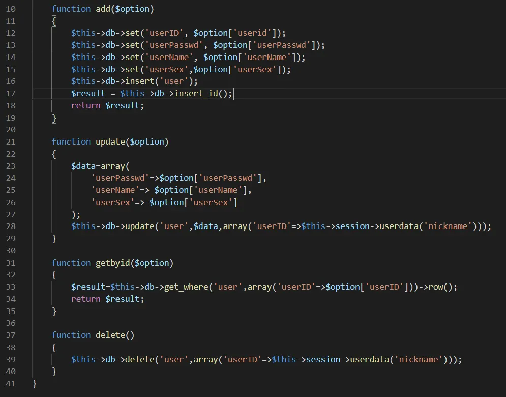 user 모델은 사용자 정보에 대한 값을 db와 통신하는 기능을 한다. CRUD는 기본적으로 다 구현해놓았다.