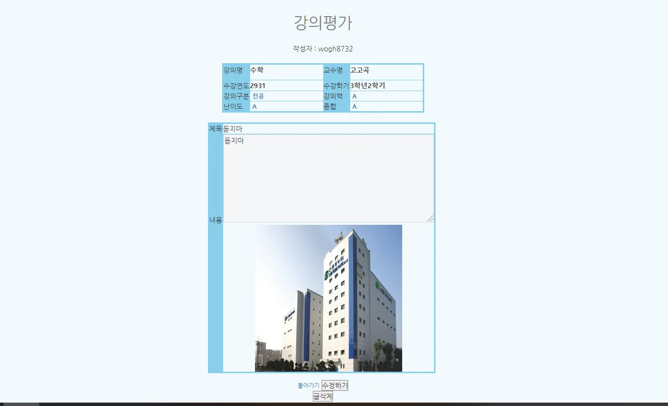 강의평가 페이지에서 게시글을 클릭하면 해당 강의평가 게시글을 확인 가능하다.
