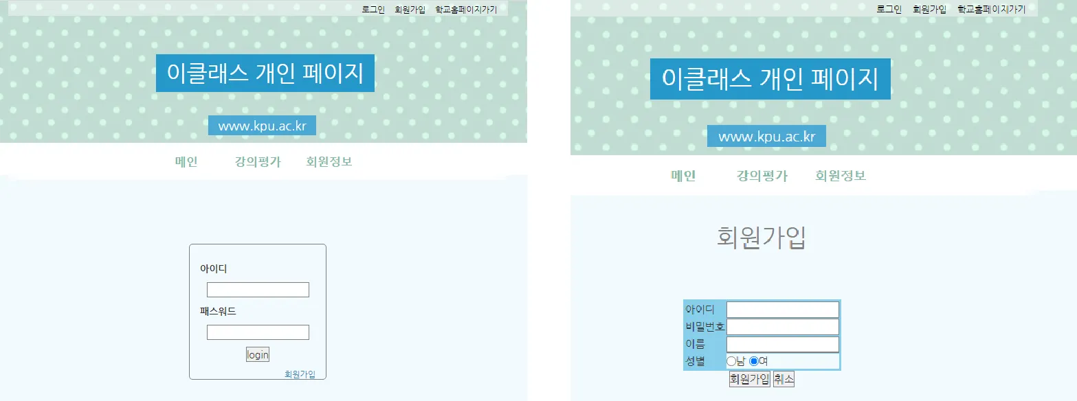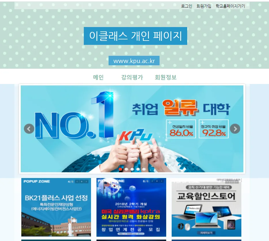 메인 페이지는 그냥 학교 메인 홈페이지에서 보이는 기사로 그냥 넣어놨다. 별 기능을 없다.