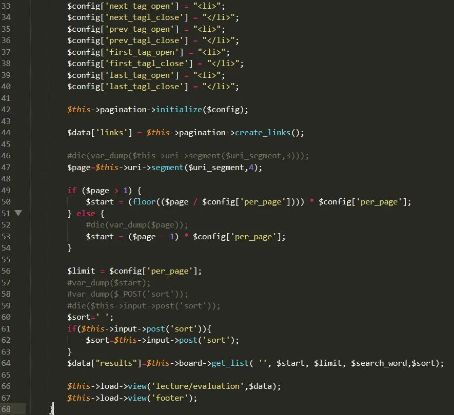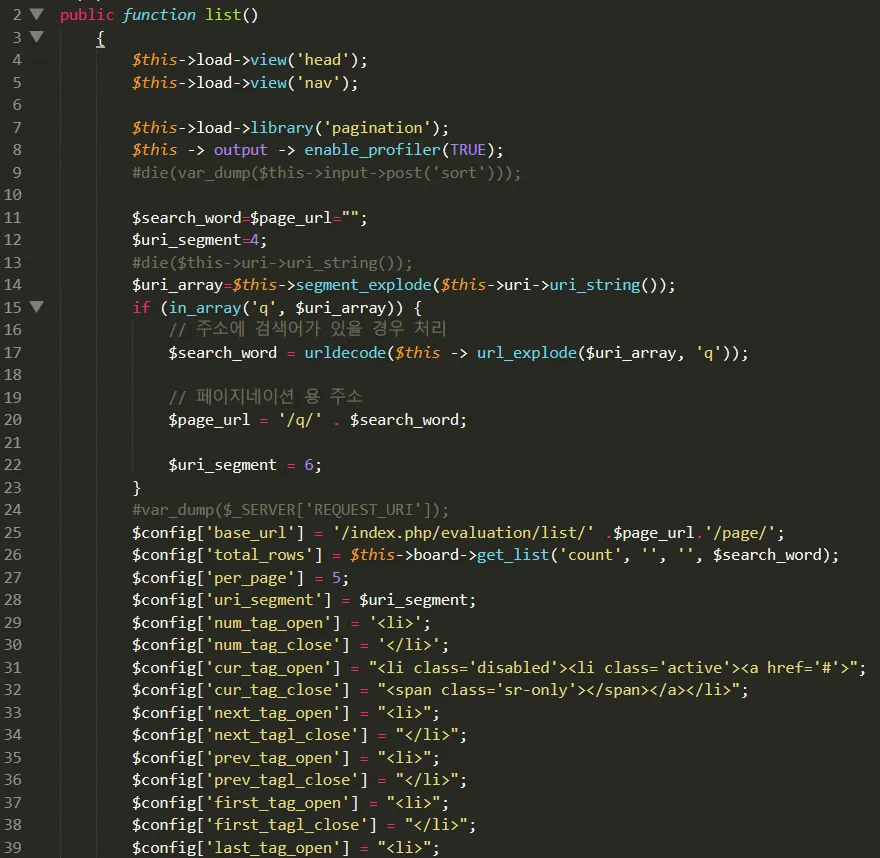 list() 함수는 강의평가 메인페이지에서 보여지는 list 기능을 한다. 페이지 네이션을 위한 설정이 들어가 있다.