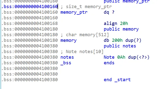 또한 bss 영역에 존재하는 변수들은 다음과 같다