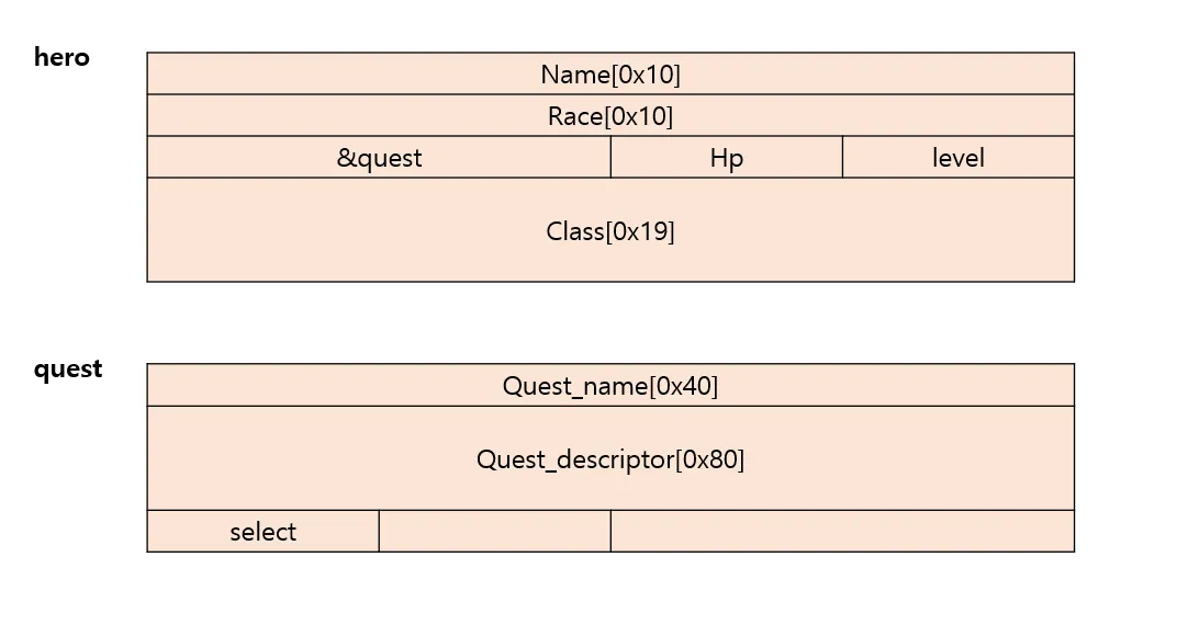 요 로직에서 hero→ quest에 0x602520을 넣는 것이였다. 간단하게 정리를 하면