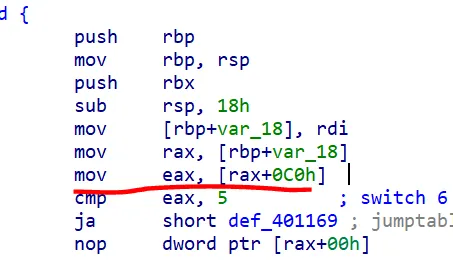 0x0000000000401139 <+17>: mov eax,DWORD PTR [rax+0xc0]