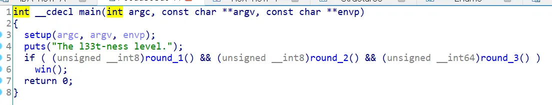 조건문을 보면 round_1(), round_2(), round_3() 함수의 반환값들이 모두 참이면 win() 함수가 실행되어 플래그가 출력된다. 각 함수들을 확인해보자