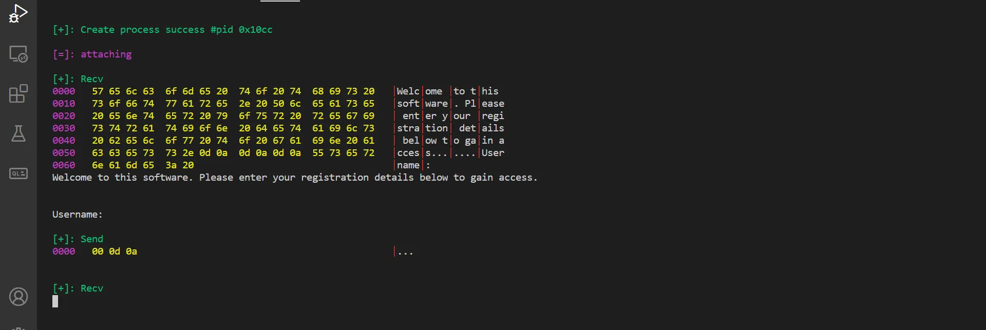 약간 문제가 좀 그렇다.. 비밀번호는 박혀있는 값을 입력하면 된다. 걍 찾으면 되는데 8921743 요거다. 유저이름은 DonaldDack 으로 추정되긴 하는데 저걸 입력하면 아까 Name의 첫 바이트가 널이여야 한다는 조건을 통과하지 못해서 성공 메시지가 안나온다.