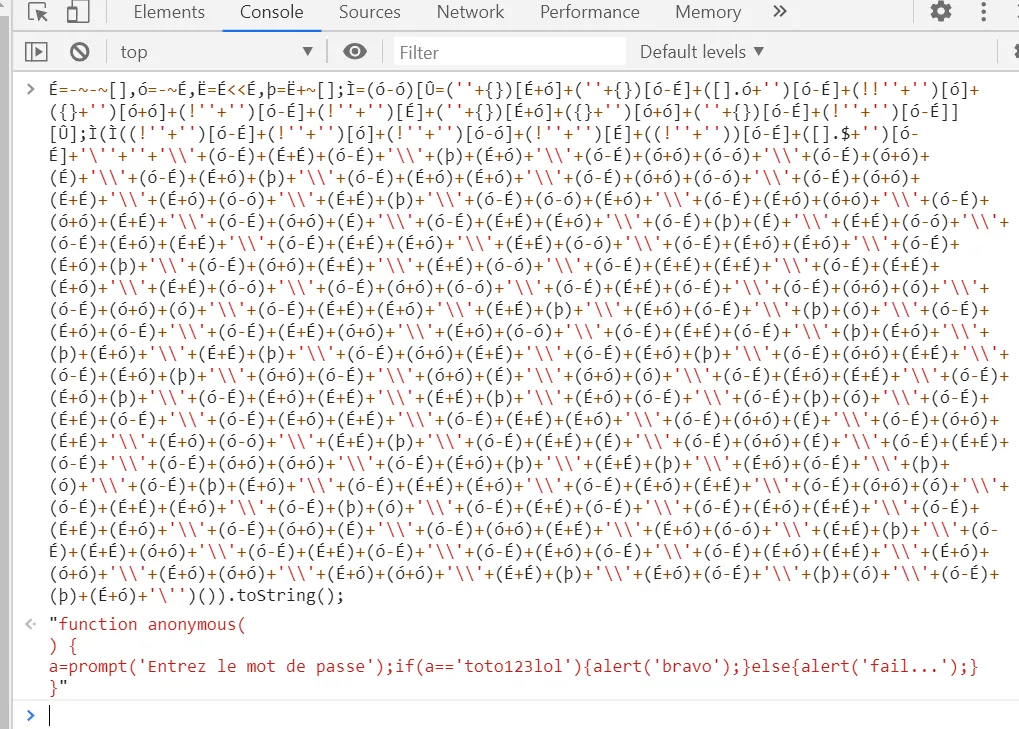추가적으로 디버깅을 통해 확인하는 방법 말고도 검사 탭에서 난독화 코드 . toString()을 하면 바로 보인다. 이유를 몰라서 찾아봤는데, 함수의 native 코드부분을 .toString()을 이용하면 코드 그대로 출력되는데, 아마 가벼운 난독화여서 내부적으로 해석이 된건지 싶다.