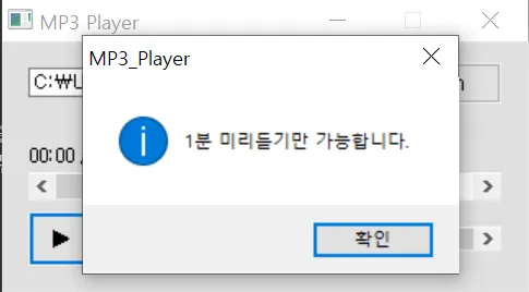 msgbox를 사용하는 부분은 총 4개이다. 전부 bp를 걸고 보면 어디서 1분 미리듣기만 가능합니다를 호출하는지 알수 있다. (0x4045d8임)