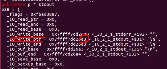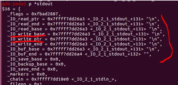 두번째는 stdout 구조체의 write_base 멤버 변수 값이 들어감