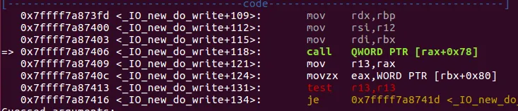 아까처럼 call이 진행된다. 그렇다면 해당 함수는 동일하게 _IO_new_file_write 함수일 것이다