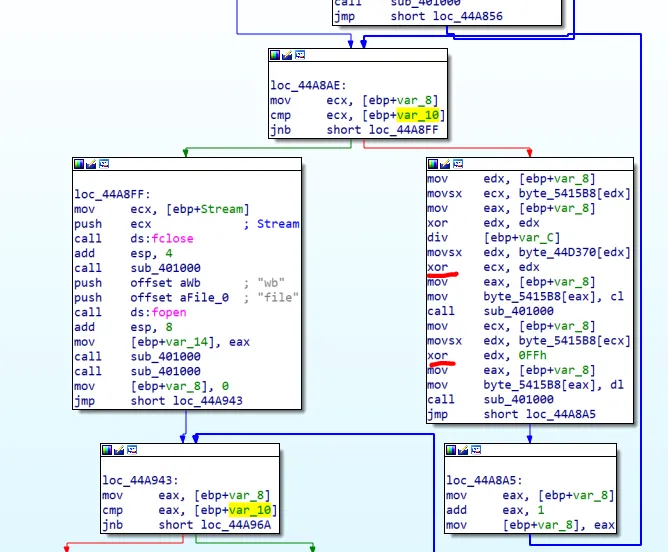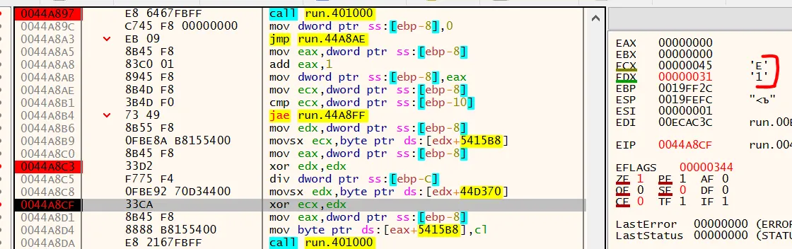 우측을 보면 ecx와 edx를 xor하고 그 결과를 다시 0x5415b8에 넣는다. 그다음 다시 가져와서 0xff과 xor를 또한다.