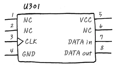 IC 스펙을 보면 위 그림과 같이 설명되어있다. NC는 No Connection으로서 아무것도 연결하지 말라는 의미이다. 3번 CLK은 edge trigger를 의미한다. 이는 clock이 올라 갈 때 혹은 내려갈 때 동작하는 것을 의미한다. 나머지는 네이밍 그대로를 뜻한다. 위 사진은 플래시 메모리에서 펌웨어 덤프 뜰때 많이 봤던 형태라 나름 익숙하다.