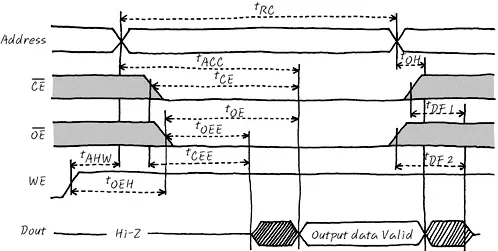 tCE는 CE/라는 신호가 Low로 떨어지고 나서 Output Data가 나올 때 까지의 시간을 뜻한다.