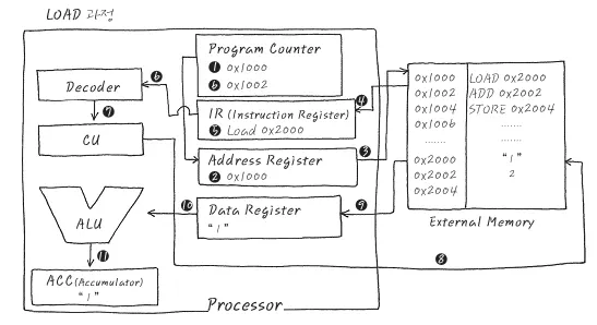 0x2000번지의 값을 읽어오라는 구나!(LOAD 0x2000)를 해석하여