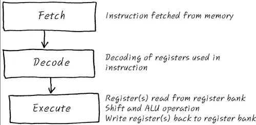 ARM7 기준으로 3개의 pipe line을 따르며 ARM9의 경우는 5단계를 가진다.