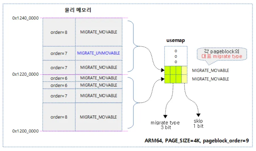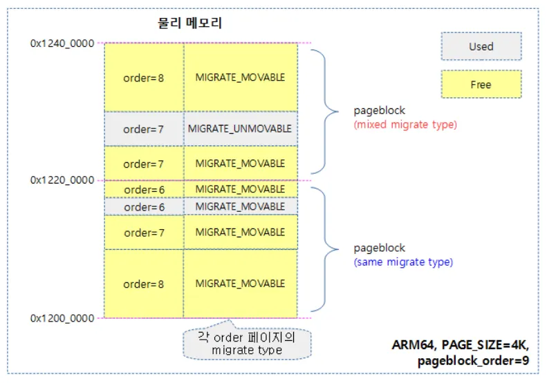MIGRATE 영어 뜻 그대로 Order-page들을 효율적으로 왔다리 갔다리 하는 과정에서 필요한 속성 정도로 이해하면 된다. 즉 최대한 커다랗고 연속된 free 메모리를 유지하고자 하는 목적으로 버디 시스템에서 설계되었다. MIGRATE 타입은 다음과 같다