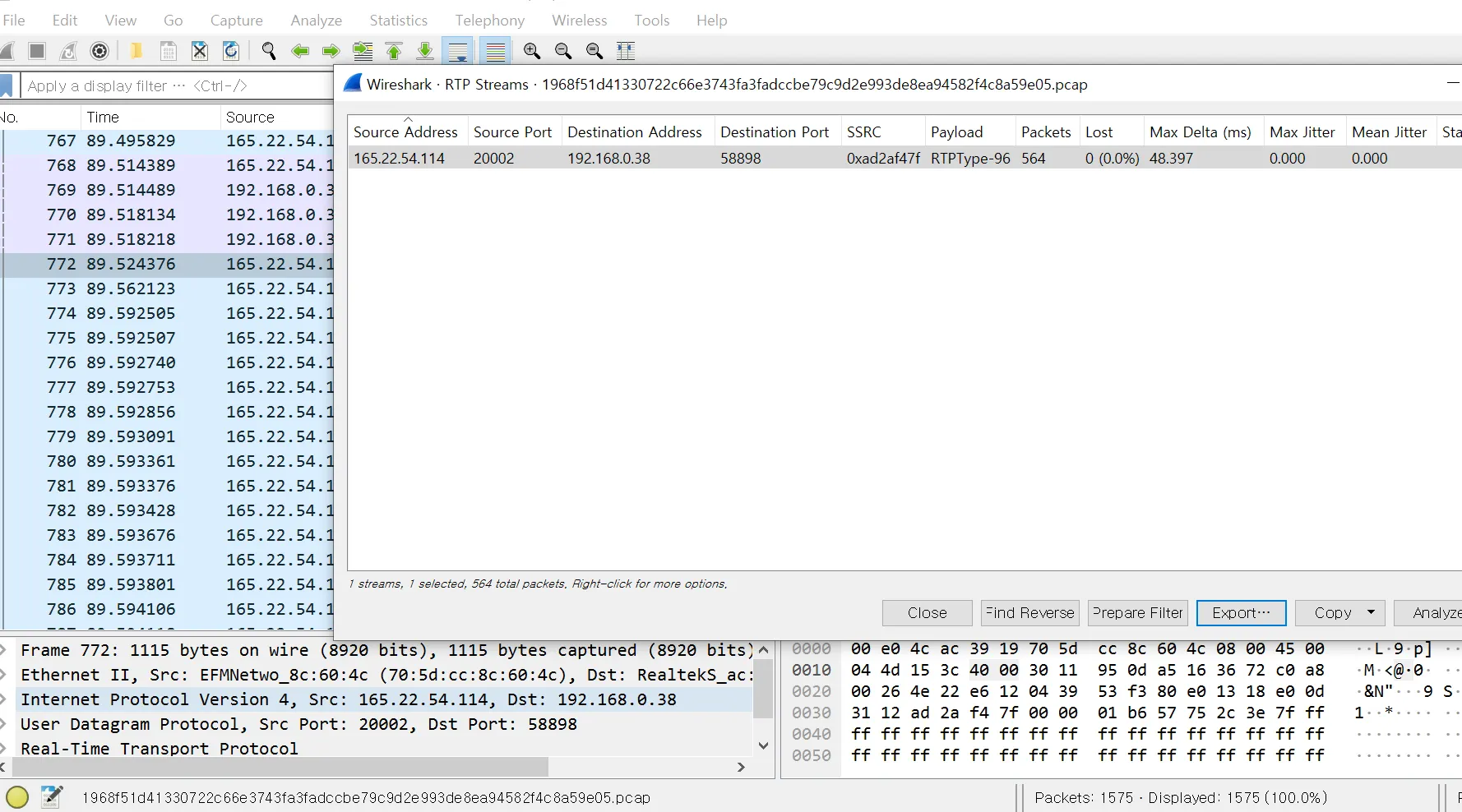 RTP 프로토콜이란 Real Time Tranport Protocol 의 약자로서 말 그대로 실시간으로 음성이나 영상 데이터를 전송하는 표준 프로토콜이다. 와이어샤크에서 RTP 스트림을 우선 덤프를 뜨자