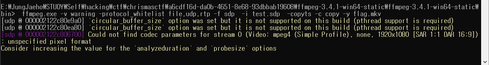 정상적으로 동작했다면 flag.mkv가 생성되고 플래그를 확인할 수 있다
