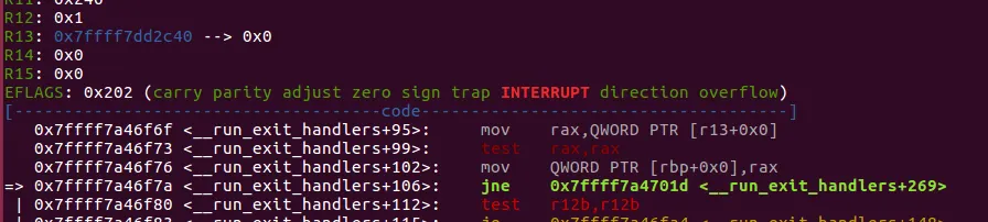 원래 디폴트로는 [r13+0x00] 에 0이 들어가 있다. 따라서 해당 로직으로 분기를 하지 않지만 위의 test rax,rax를 진행할때 " set $rax=0 " gdb 명령어로 rax값을 변경하였다.