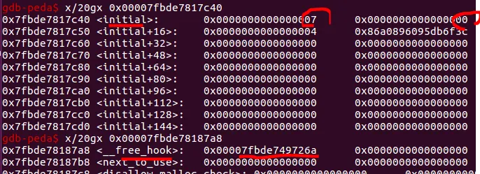 inital+8 값을 0으로 만들기 ⇒ libc_base에서 offset으로 거리를 구한뒤 fsb로 0삽입