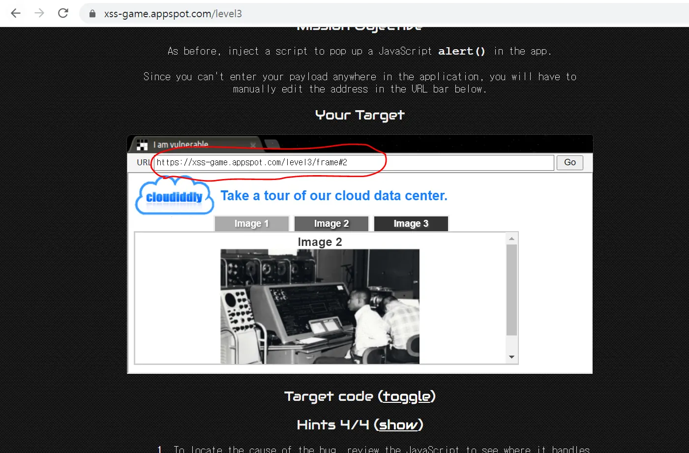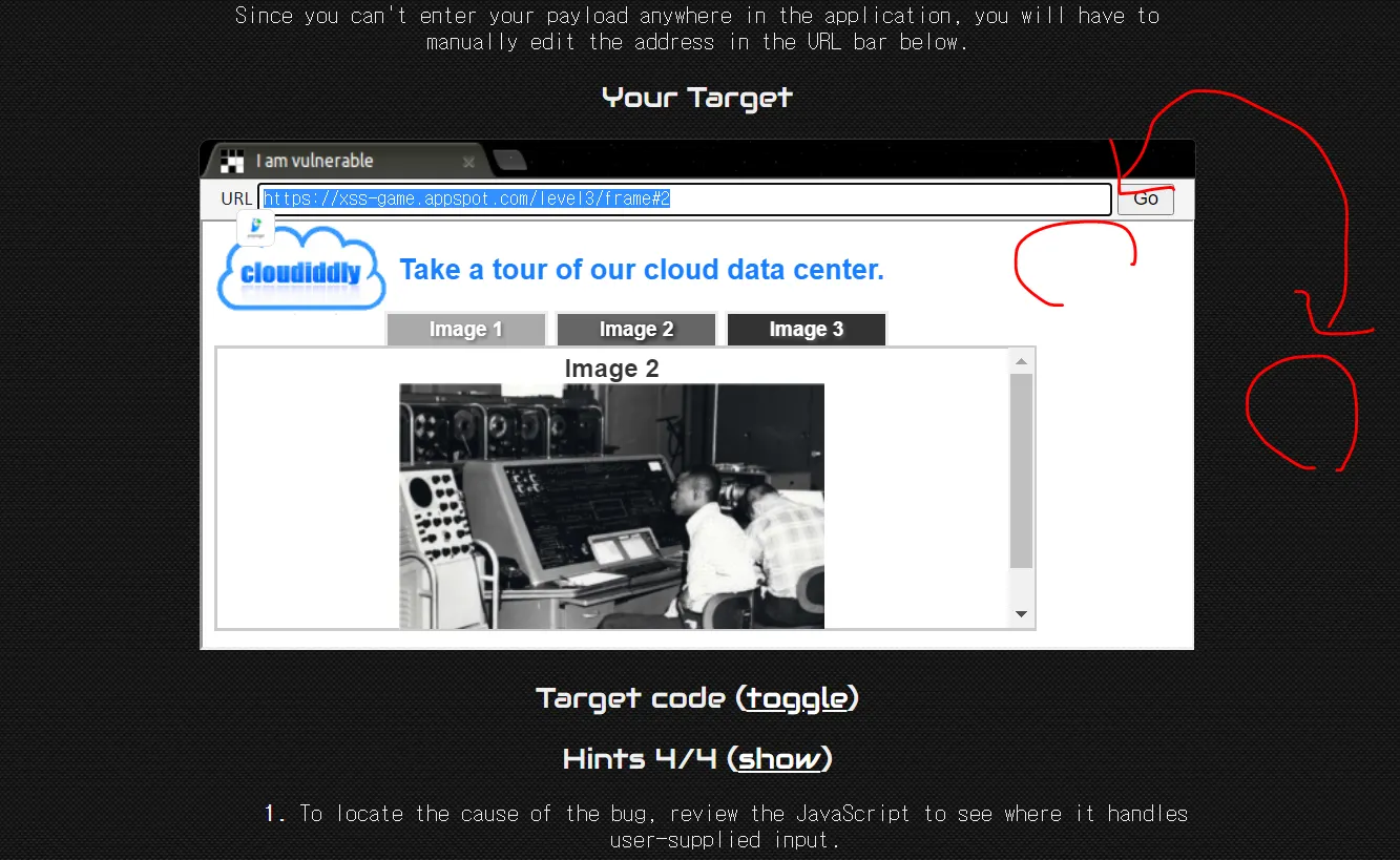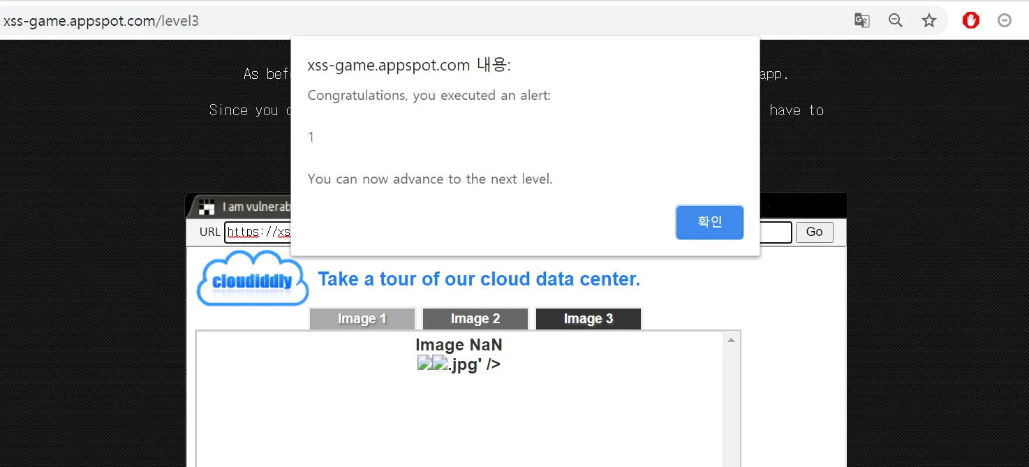 뭐 어쨋든 소스코드는 분석이 됬으니 저기 이미지 위에 나오는 Image 2 ⇒ 요부분이 url #다음 파라미터로 들어가고 아무 필터링이 없는걸 확인했으니, img 태그를 종료하고 스크립트 태그를 넣으면 될것이다.