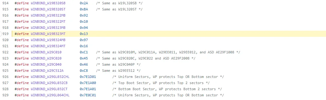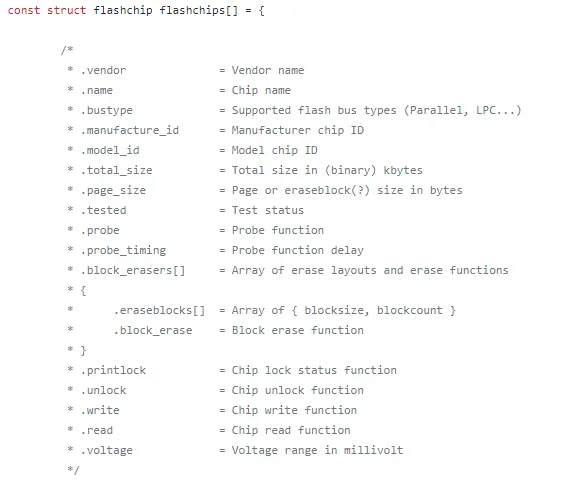 flashchips.h 코드를 보면 flashrom에서 지원 가능한 모델 명을 확인할 수 있다.