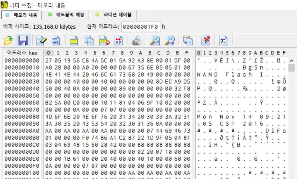 정상적으로 read가 되면 위 사진과 같이 플래시 메모리 정보가 읽힌다.
