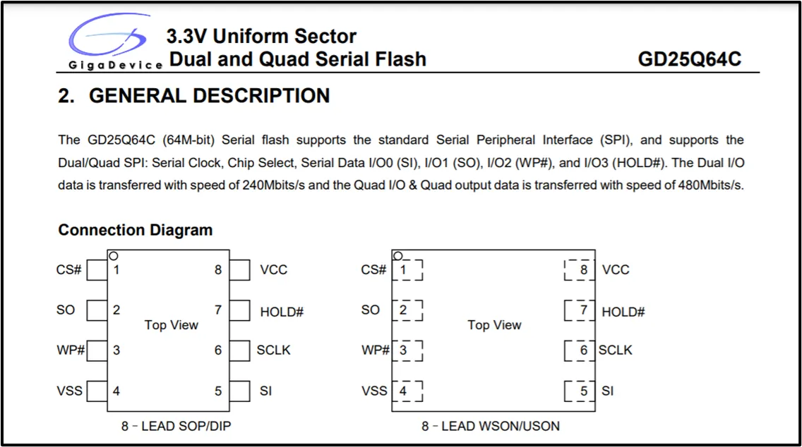 만약 flashrom을 이용한 펌웨어 덤프가 실패한 경우, spi 통신을 이용하여 직접 플래시메모리에서 데이터를 읽어오는 방법을 시도할 수 있다. 해당 방법의 경우 직접 대상 플래시메모리의 데이터 시트를 분석하여 코드를 짜야한다.