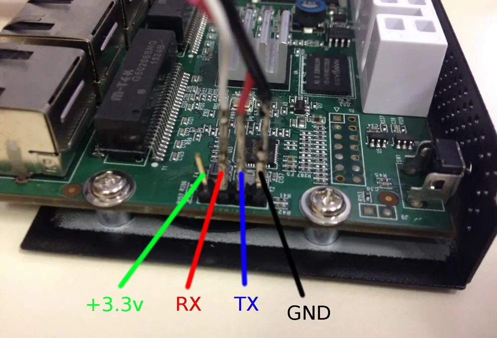 일반적으로 UART 포트는 제거되어있는 경우가 대부분이므로 우선적으로 GND, RX, TX, VCC 핀을 식별하여 핀 헤더를 납땜하는게 편하다.