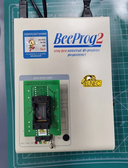 뽑아낸 칩을 소켓에 넣은 후 beeprog와 연결한다.