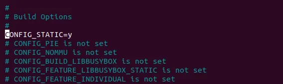 menuconfig 화면을 나오면, .config 파일에 CONFIG_STATIC=y 가 설정되어 있는것을 볼수있다.
