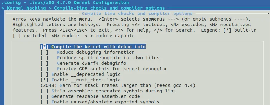 kernel hacking → Compile-time checks and compiler options → 맨위에꺼 체크