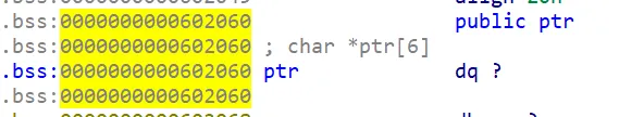 위 사진이 .bss영역에 저장되어 있는 ptr[6] 배열이다